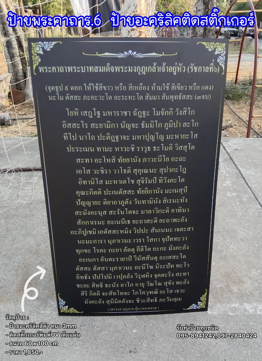 ป้ายคาถาบูชา ป้ายอะคริลิคติดสต…